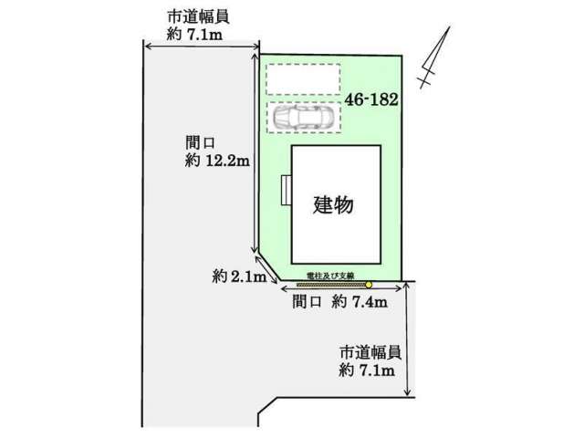 | セットバック | 無 | 接道状況 | 角地(公道・南東側・間口7.4m・幅員7.1m、公道・北西側・間口12.2m・幅員7.1m) |