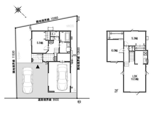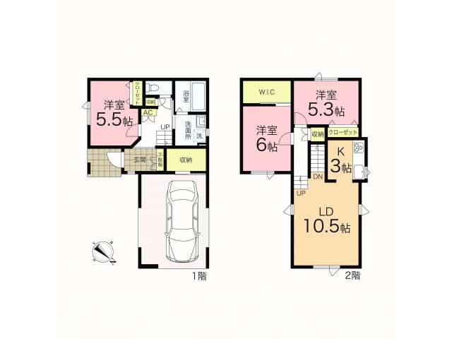 | 詳細間取 | 3LDK (1階:洋5.5帖×1、2階:洋6帖×1、2階:洋5.3帖×1、2階:LDK13.5帖) | ||